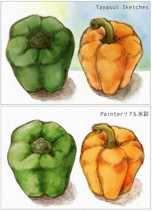 Rebelle2 で塗り練習。昨年末にPainter(リアル水彩)とiPadのTayasui Sketchesの塗り比較(https://t.co/UJUUc6GZLq)と同じ線画を使ってみた。もう少し塗りになれないとなぁ…(笑)