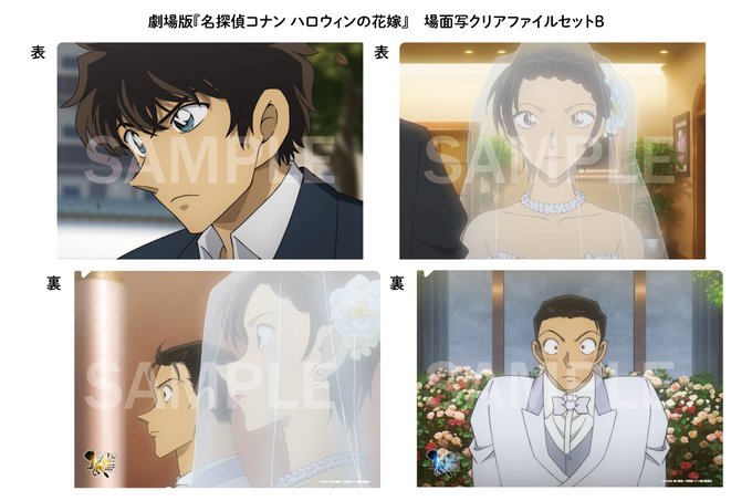 『劇場版名探偵コナン ハロウィンの花嫁』の場面写が両面にプリントされた、A4クリアファイルの2枚セット。全4種。