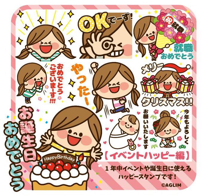 1年中イベントや誕生日などお祝いに使えるハッピースタンプです♪