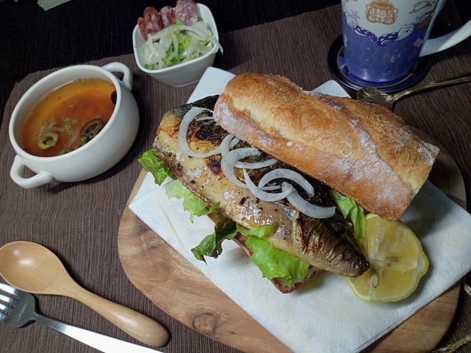 ボリューム満点サバサンド