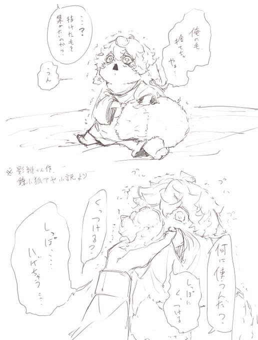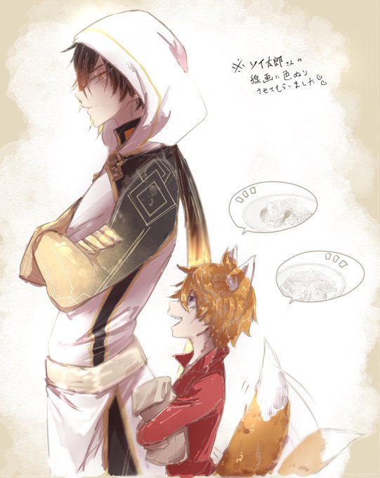 影緋さん( #_Eiagnsn )作鍾子狐アヤ小説のとっても可愛い1シーンを描かせてもらったのと、ソイ太郎さん( #soooooi127 )の美麗で素敵なモラ子狐アヤの線画を借りて色塗りさせてもらいました!!