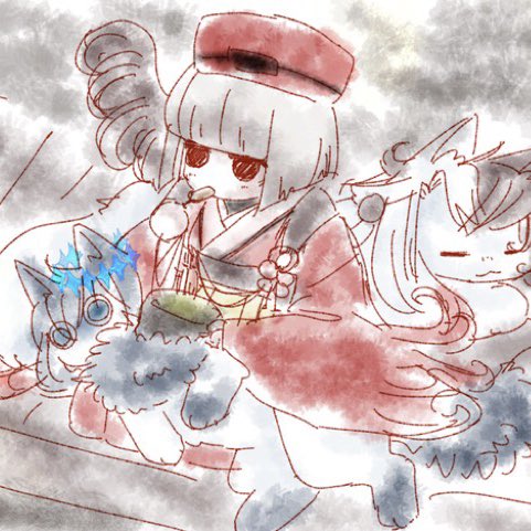 27)ラフ 何度もラフを描いたお正月のをのせときます なぜかぐだちゃんと猫たちのが残っていない