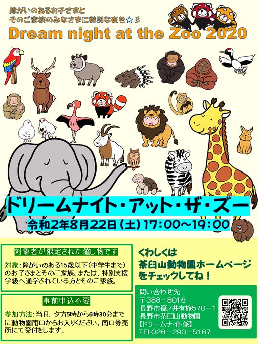 8月22日(土)の『ドリームナイト・アット・ザ・ズー』(対象者が限定されたイベントです)は現在のところ開催予定です。