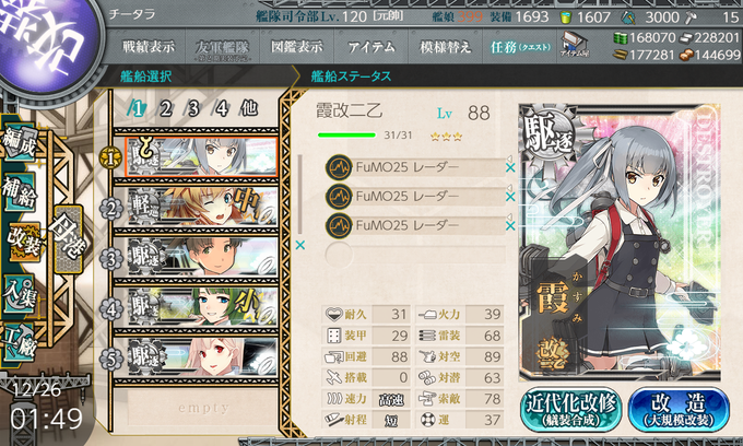つよw はわわ風雲すこすこ♥ …なお利根。利根ちゃん、さっきAでも出たよね;w;