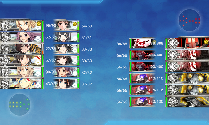 5-1任務ボス前胸熱うおおおおお!…8w 由良さんに何か忘れてるな~って思ったら甲標的載せずに電探載せてたら対空CI仕様になってた…懐かしき5-4のおもひで(ToT)