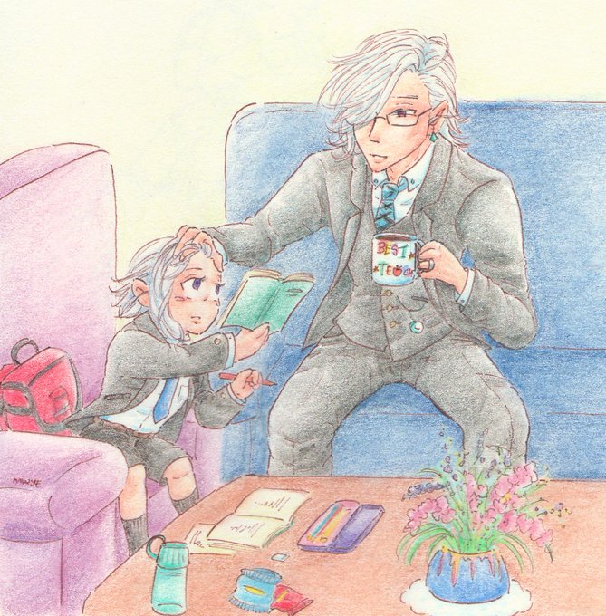 Some quiet father & son time after a long school day (´∩。• ᵕ •。∩`) #一目連先生
