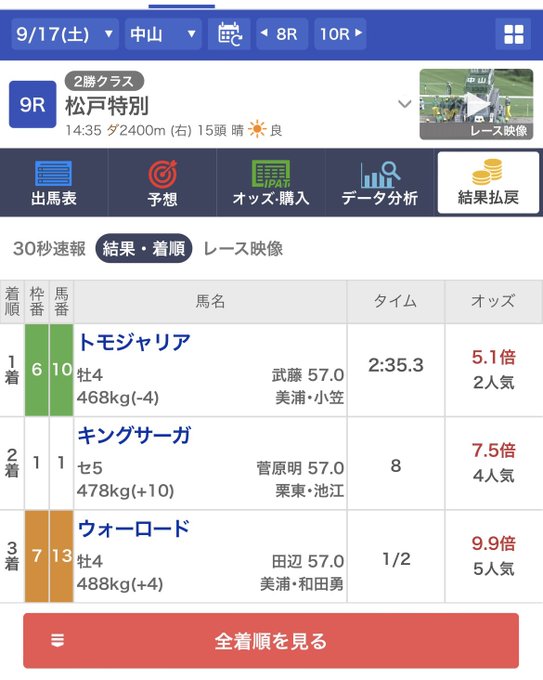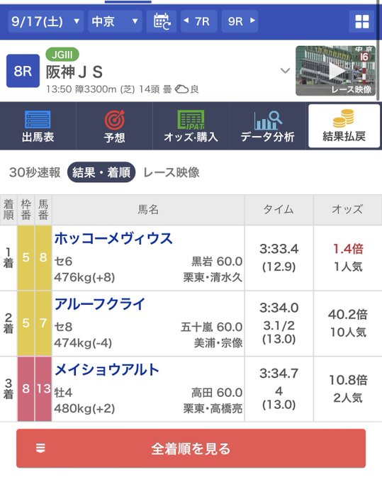 ちょっと高かったから3連複当てたかったな〜