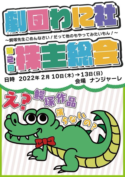 出演も演出も『全員正社員』(劇団わに社所属俳優)なので、わに社のこと気になるなぁと少しでも思ってくれている方はどの回でもオススメなので是非この機会にわに社と出会ってもらえたら嬉しいです🐊✨