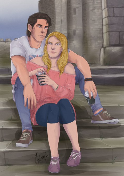 Kind of a "Draw this Again" kind of thing... because I felt nostalgic and I wanted to revisit that old picture I did in 2008 of Hugh and Freya (@GinaBlaxill's wonderful characters). Drew this new picture as some sort of escapism from the stress in the office this week.
