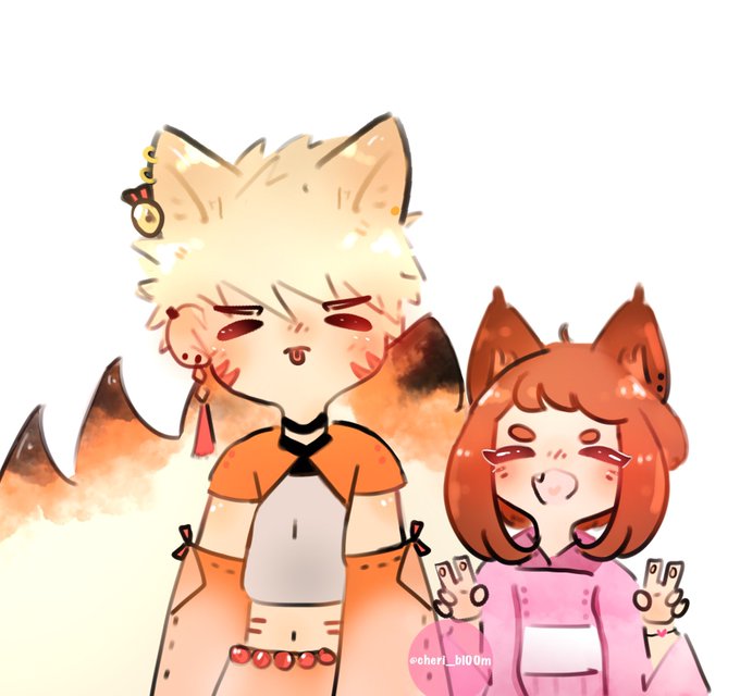 Finally! I drew Kacchako kid!! I love her so much 😭 but i dont have name for her XD + i have little idea for her young brother ✨ also i drew other kacchako kids oc’s, by @mhasophy and @Superevey1 ☺️🌸