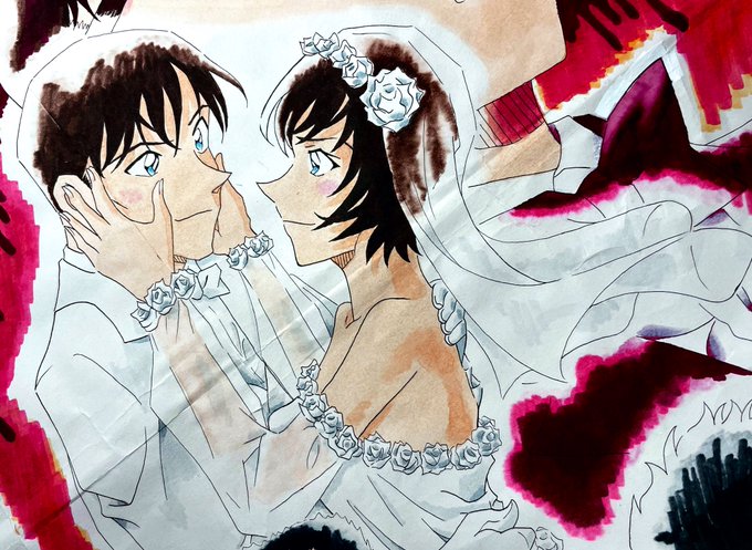 ティザー模写完成した!! やっぱり主役は高佐💓 ラブラブで禍々しくしたつもり😂 #ハロウィンの花嫁 #名探偵コナン #警察学校組