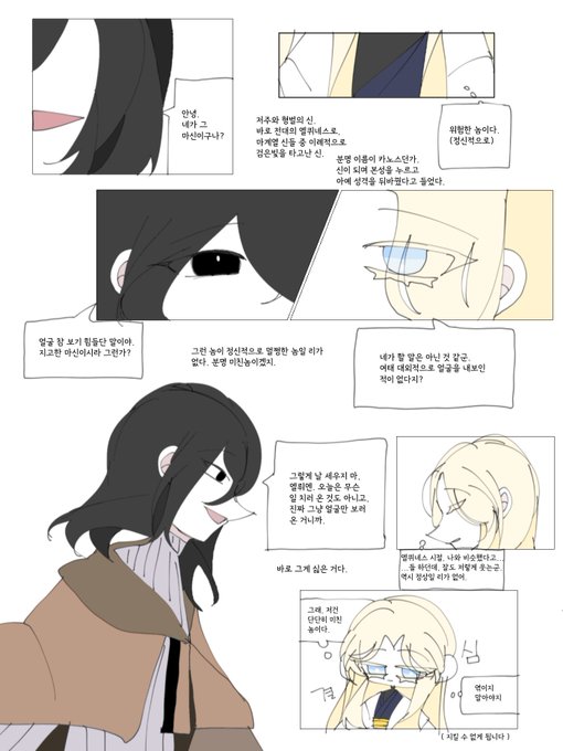 사람 없는 틈을 타... 탐라에 적폐날조 뿌리기 이게 뭐냐면 그겁니다 카노스랑 엘뤼엔 포지션 체인지... 보고 싶은 것만 그림 두 장 안 이어짐