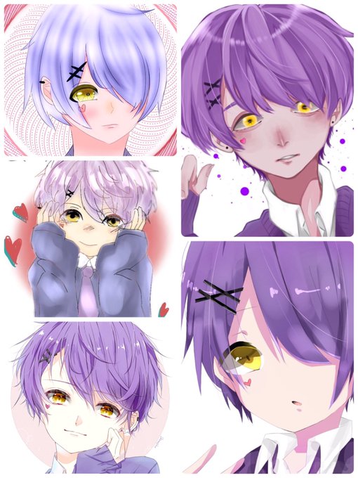 私のコテキャラの紫那くんです! みんなが描いてくれたのをまとめました! 描いていただけたら嬉しいです😆 私のコテキャラ作ってくれたのは晴【@ _yrad 】です。