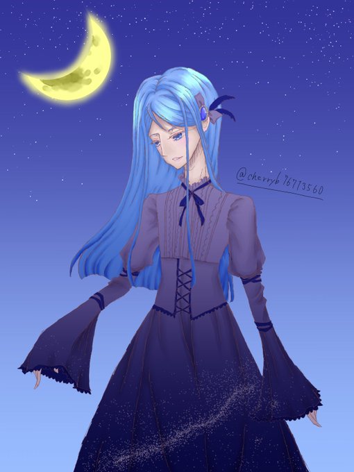 夜空のワンピース👗 #Precure #水無月かれん #イラスト #ファッション #コーデ #ゴスロリ