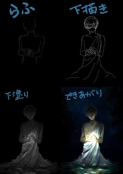 @bashfull_muziq 趣味の中二全開でお恥ずかしいですが、白黒でもさもさ塗ったあとに、オーバーレイモードやらで着色するです_(┐「ε:)_ やる気のないメイキング?あったので二枚ほどペタ