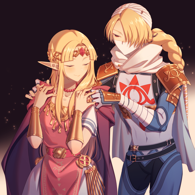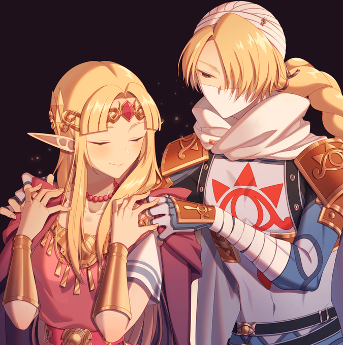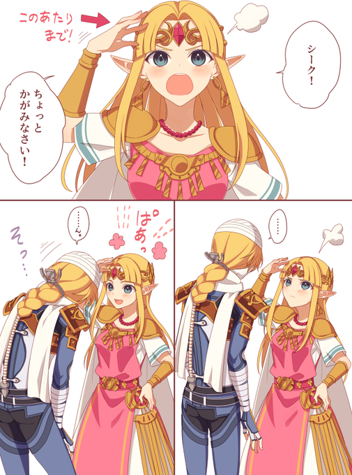 街で髪を下ろしたシークと歩いてたら「君たち顔が似てるけど家族かな?」と声をかけられてシークのお姉さんを名乗り始めるゼルダちゃん。(2枚目はお洋服までお揃いにするの巻)