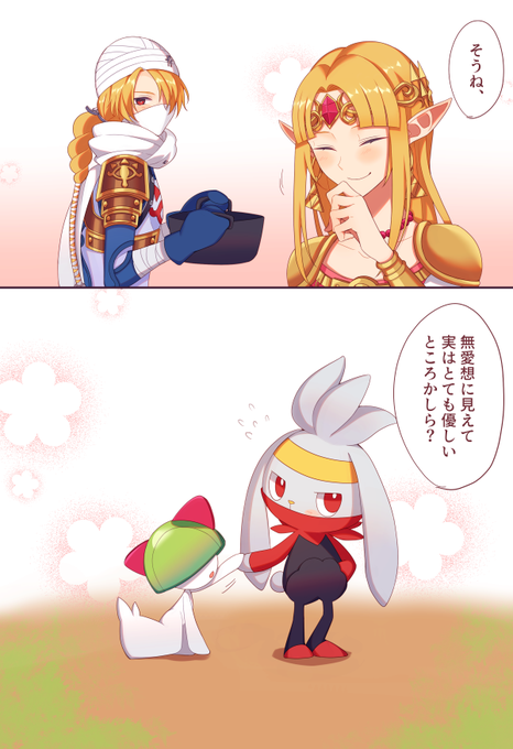ゼルダちゃんのラルトスとシークさんのラビフットの仲がぎこちないお話。シークさんとラビフットは見た目もちょっと似てるけど性格もなんとなく似てるといいなと