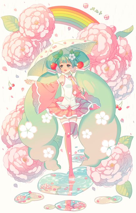 ミクの日ミクちゃんおめでと~~!!メルト聴きながら描いた桜ミクちゃん´`* #ミクの日