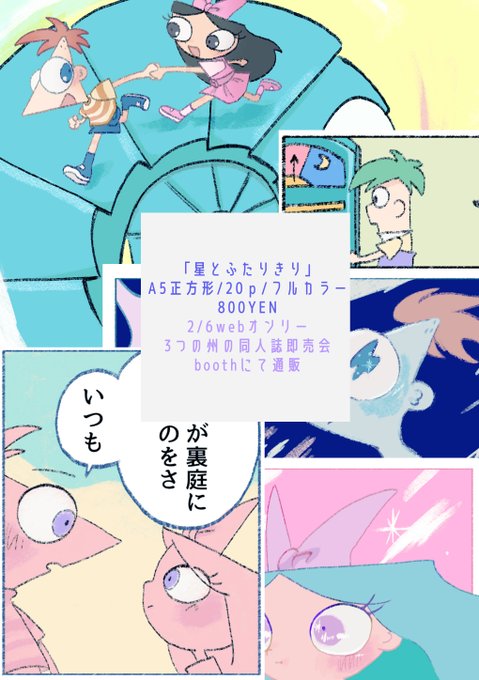 #3つの州即売会 新刊でます!! 🤍フルカラー・20ページ・800円🤍 悪夢を見たイザベラがフィニアスと階段をのぼります