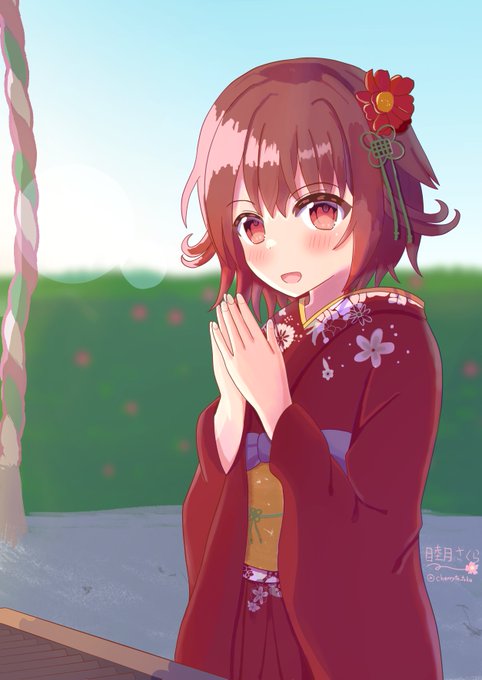てーとくは何をお願いしたのかにゃ?睦月はね~ 睦月ちゃんと初詣の絵です!今年も頑張って描いていきますのでどうぞよろしくお願いいたします! #艦これ