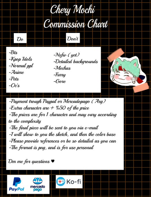 Hellooo guys this is my commission chart! I'm having hard times bc I'm jobless and I wanna help in my house 💖