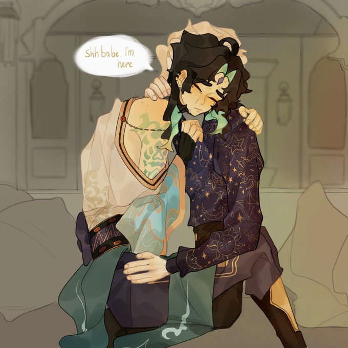 Сяо не издаёт не звука, лишь благодаря мелкой дрожи проходящей по всему телу подобно току , и мокрым соленым пятинам на своей рубашке Альбедо чувствует что Сяо плачет #xiao #GenshinImapct #albedo #xiaobedo