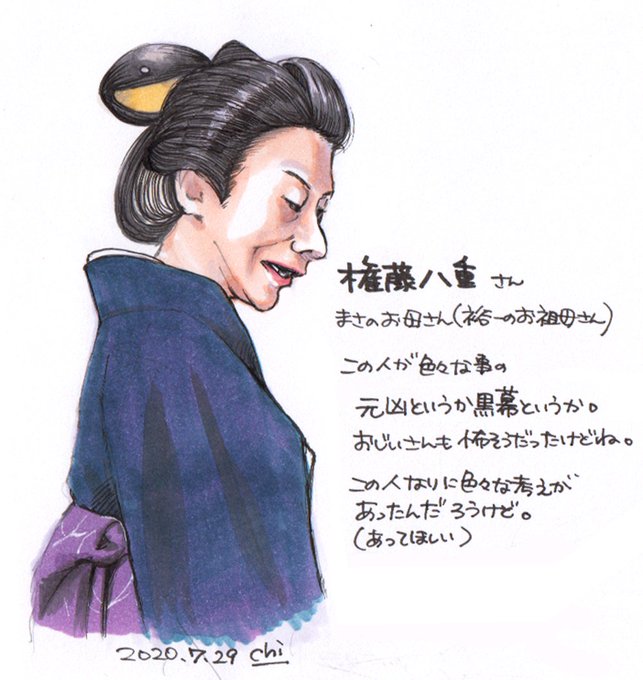 朝ドラ「エール」第6週 27 回 (再) この回は先生も音も過去に描いたし、印象残ってるのはやっぱりこの人なので、マニアックだけど八重さん。迫力あるー!実は前も描いてましたがアップはしてませんでした。 #朝ドラ #朝ドラエール #絵ール #エール絵