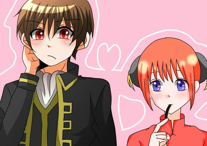 きゆうちゃん(@_kyu001 )の沖田くんのお隣に神楽ちゃん描かせていただきました♡