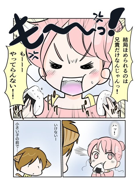 #スパダリにゃんこ #くぅの日常 第132話 おにぎりの恩義 ハイスペックなスーパーダーリン、スパダリ猫を目指すくぅと、飼い主しずくの日常マンガ。 みやことねこみち、2人の兄妹ゲンカがついに決着。 その決め手となったのは…? #創作マンガ