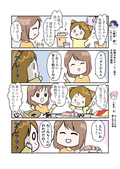 #スパダリにゃんこ くぅの日常 第128話 兄の女子力 ハイスペックなスーパーダーリン、スパダリ猫を目指すくぅと、飼い主しずくの日常マンガ。 小峯宮兄妹のほほえましい子ども時代。楽しい思い出ではあるものの、妹には妹の思うところもあるようで…。 #創作マンガ