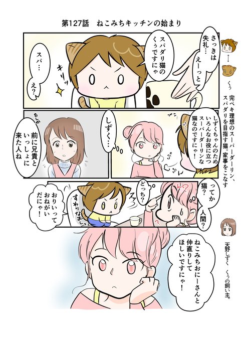 #スパダリにゃんこ #くぅの日常 第126話 話がある ハイスペックなスーパーダーリン、スパダリ猫を目指すくぅと、飼い主しずくの日常マンガ。 兄妹ゲンカで元気をなくしたねこみちのため、くぅが行動開始!妹みやこも、兄の様子は気になるらしくて…。 #創作マンガ