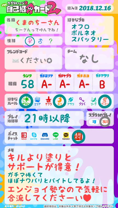 #スプラトゥーン2自己紹介カード