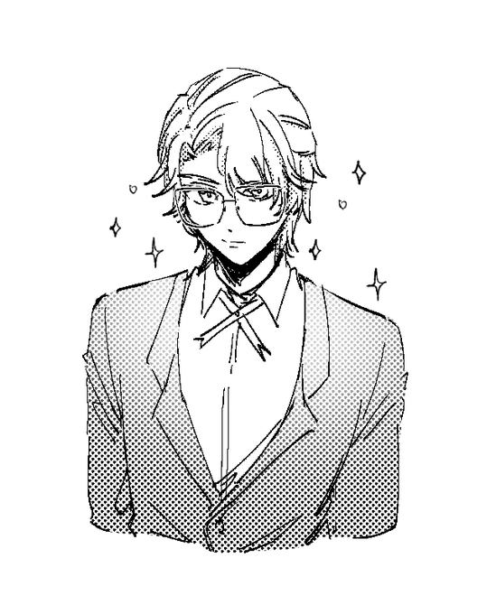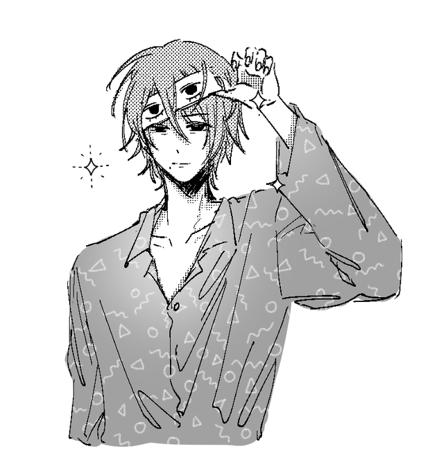畢夏普的顏色大概是這種感覺 為了把特徵畫出來把他的頭髮往旁邊撥了,平常是很遮臉的劉海、頭髮大概是右分的 髮線偏左