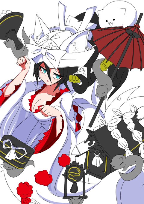 白無垢のミタマ 線画がやっと完成しました。仕上げは明日に… #にゃんこ大戦争 #絵描きさんと繫がりたい #絵柄が好みっていう人にフォローされたい