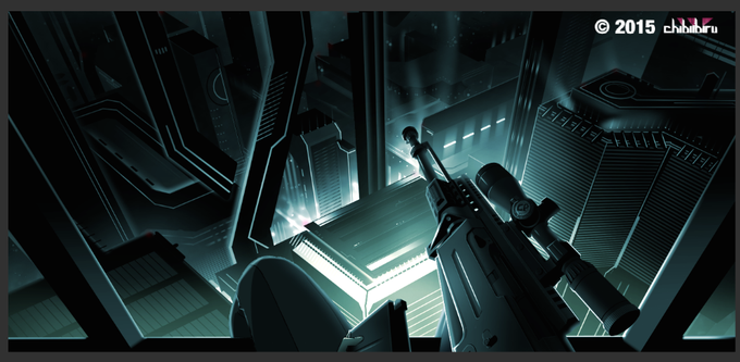 次のイラストのラフ描けた!FPSっぽいイメージ。 FPSやったことないけども…。