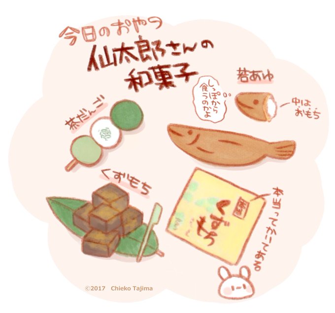 今日のおやつは仙太郎さんの和菓子 #イラスト #イラスト基地 #おやつ #おいしい