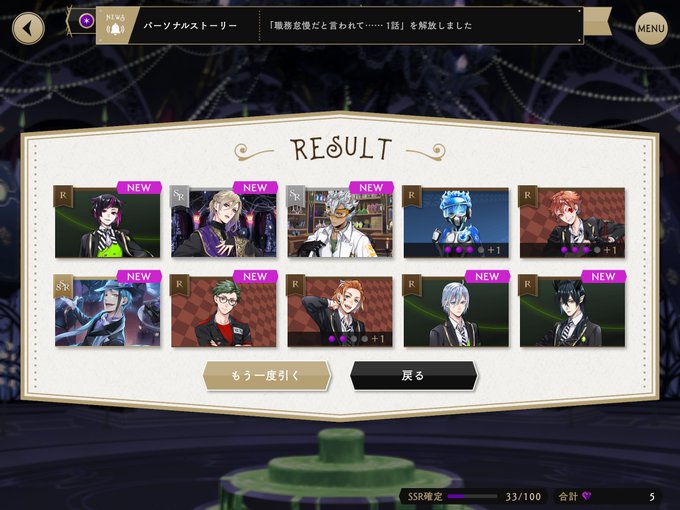 ひえっ大当たり引いたってかこのゲーム最高レアめっちゃ出ますね……やっとこジェイドのSR以上引けたーーー!!エースデュースコンビで引けたの君らカップリングなんか??
