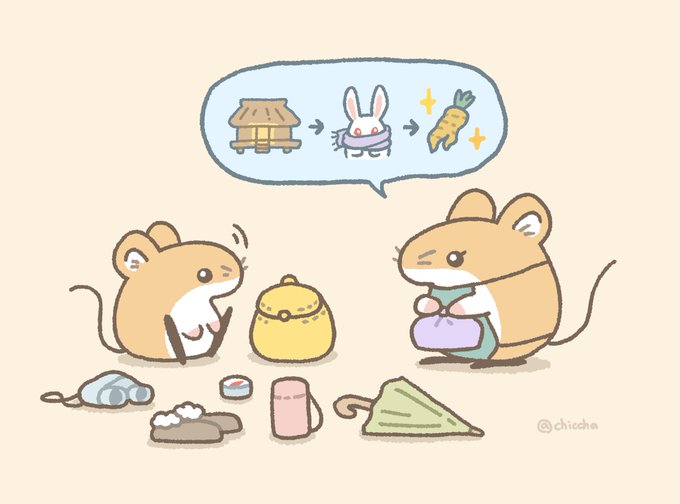 雪山に住むウサギちゃんと一緒にお茶を楽しむばんちゃん🍵☺️