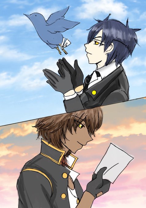 伝書鳩使って長期間の遠征に出た大倶利伽羅に手紙を送る光忠で、彼から返事が来ることを期待しているという絵です。