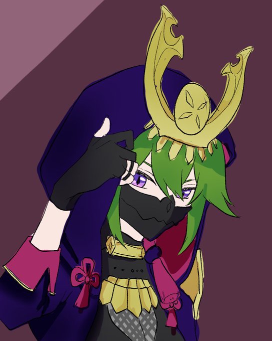 久岐忍の被ったら兜みたいになるフード描きたかったけど腰が限界なので適当になった……ごめんねしのぶぅ… #GenshinImpact #原神