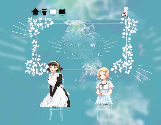 CoC「やさしい朝をくださいね」 KPC:不破 菜花(チコ) PC:星乃 瑠々華(にいなさん) お嬢様とメイドでやさ朝行ってきます!!٩( ‘ω’ )و