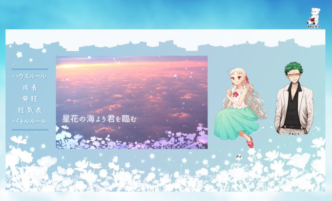 CoC「星花の海より君を臨む」 KPC:アイ(チコ) PC:アキヒト(にいなさん) 今日は二人でのんびり楽しんでくるよ~٩( ‘ω’ )و