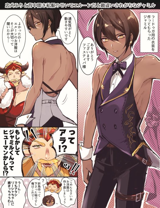 忠犬ぶりと背中開き私服のせいでエルーンだと勘違いされがちなジャミル(ジャミル+ファスティバ)