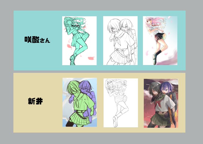 咲酸さんに付き合っていただいてラフ線画色塗り交換(?)しました!神絵師、ラフも線画も綺麗すぎてえぐいんだなって思った…