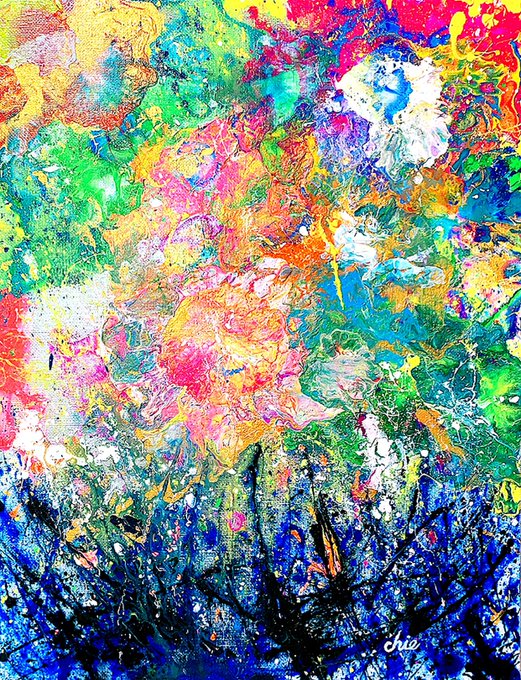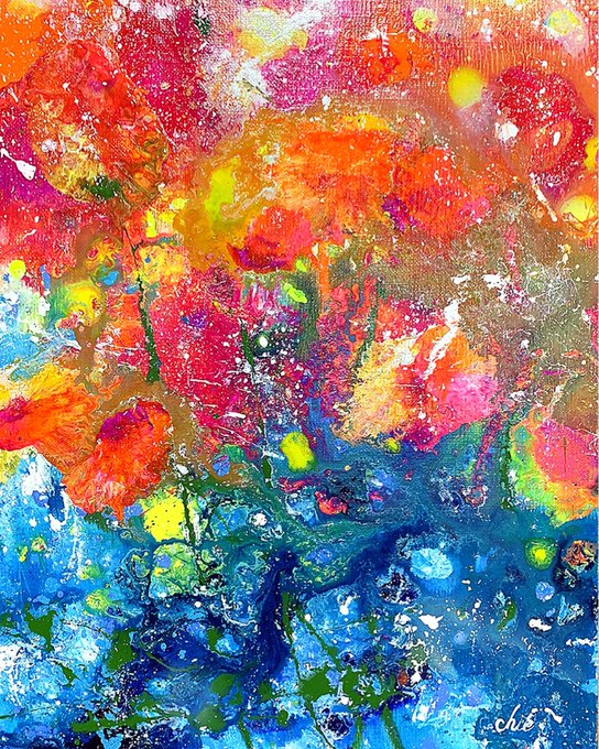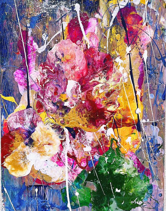 アクリル絵の具で抽象画を描いております😊