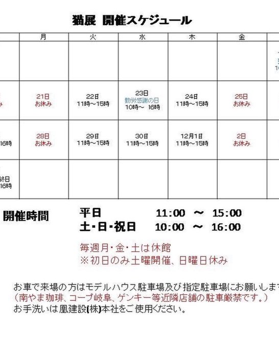 猫展は、火水木祝、土日どちらかが営業日です!