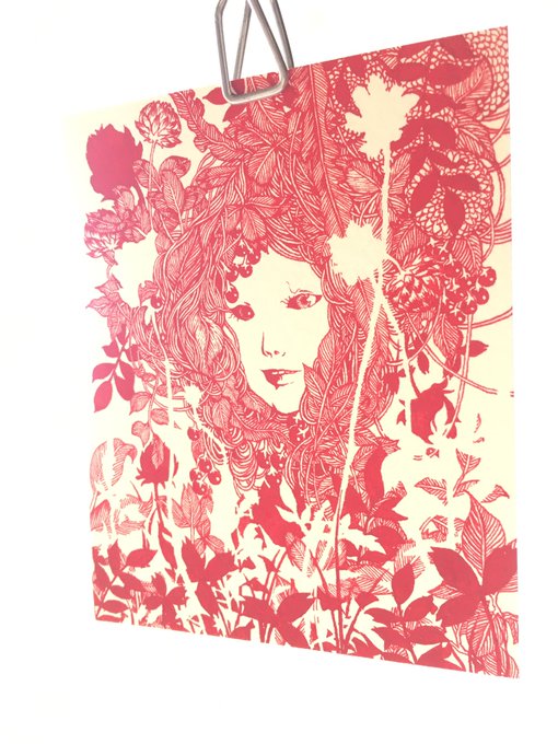 赤の顔料インク。ほぼ日に晒してないからか、全く退色してなくてとても状態がよい。
