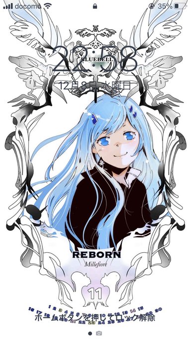 10.ロック画面は天野明先生の無料配布イラストを(家庭教師ヒットマンREBORNのブルーベル🐻。11月もう終わってるけどかわいいからそのまま)。