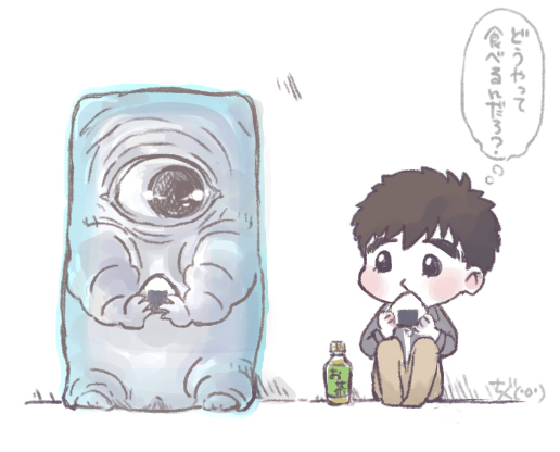 ぬりかべと暁人くん。