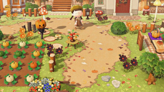 果樹園・お花畑などに加え、かぼちゃ畑や森っぽいエリアを新しく作りました🌳ハロウィン家具もたくさん🎃ˊ˗